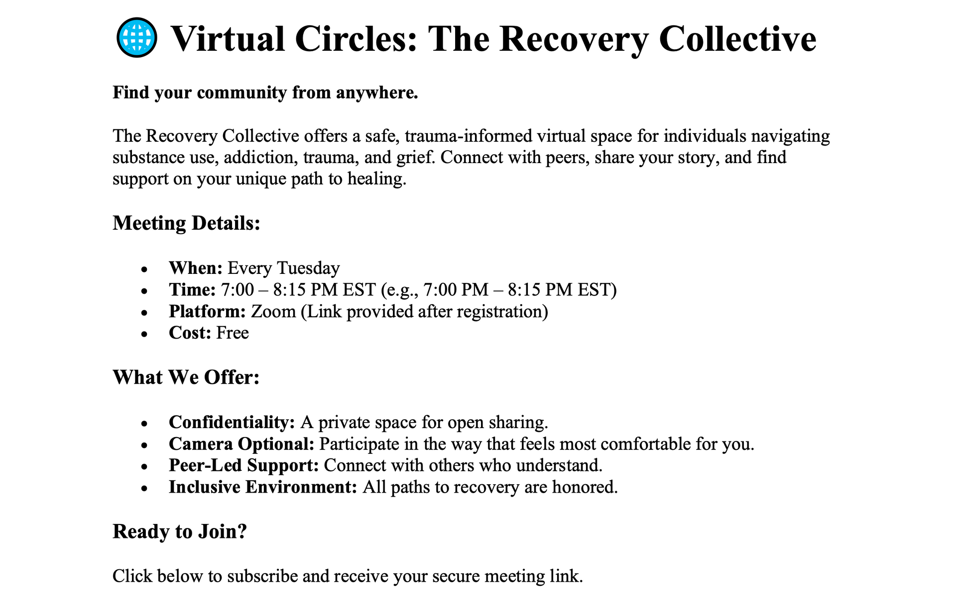 The central goal that brings the Collective together is RECOVERY.